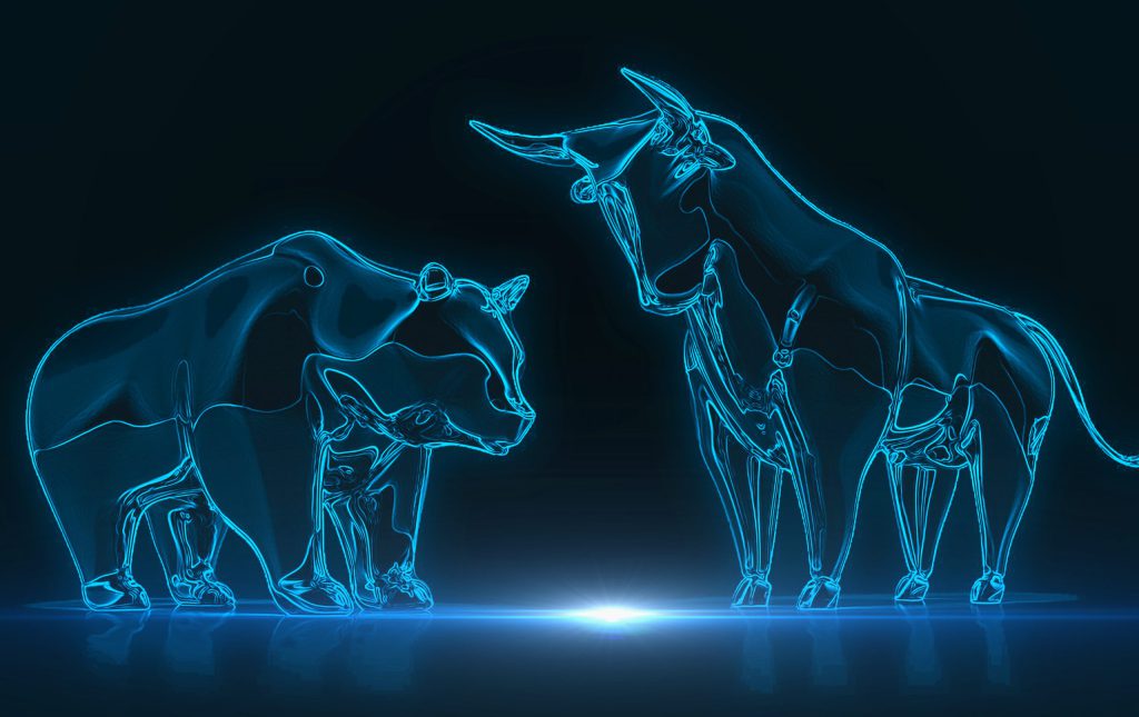 Das Wort Bullenmarkt steht an der Börse für anhaltend steigende Börsenkurse, Bärenmarkt hingegen für anhaltend sinkende Kurse.